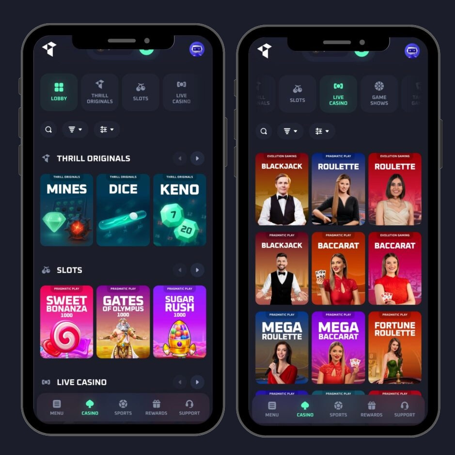 Mobiles Spielen ist heute Standard â deshalb ist unser Angebot fĂŒr Smartphone und Tablet optimiert. Mit der Thrill App bietet Zugriff auf die neuesten Spiele von Hacksaw Gaming und Evolution Gaming. bleibt die Bedienung stabil, MenĂŒs sind klar, und Spiele laden schnell. Sie können unterwegs einzahlen, spielen und Support erreichen, ohne auf Desktop-Funktionen zu verzichten. Wir empfehlen WLAN oder eine stabile Verbindung, besonders im Live-Bereich.
